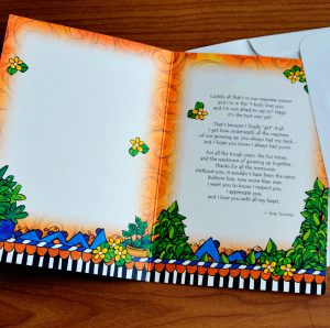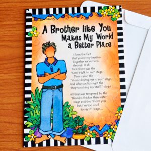 Heartfelt sentiment: author/illustrator Suzy Toronto’s heart-tingling words and fun-filled illustrations are perfect for letting the brother in your life know how much he means to you every day; see photo for greeting card message