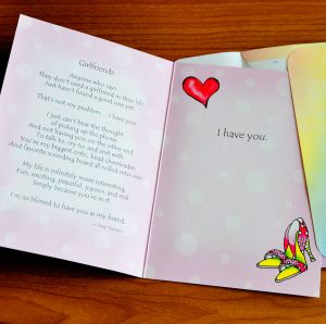 Heartfelt sentiment: author/illustrator Suzy Toronto’s heart-tingling words and fun-filled illustrations are perfect for letting someone special in your life know how much she means to you every day; see photo for greeting card message