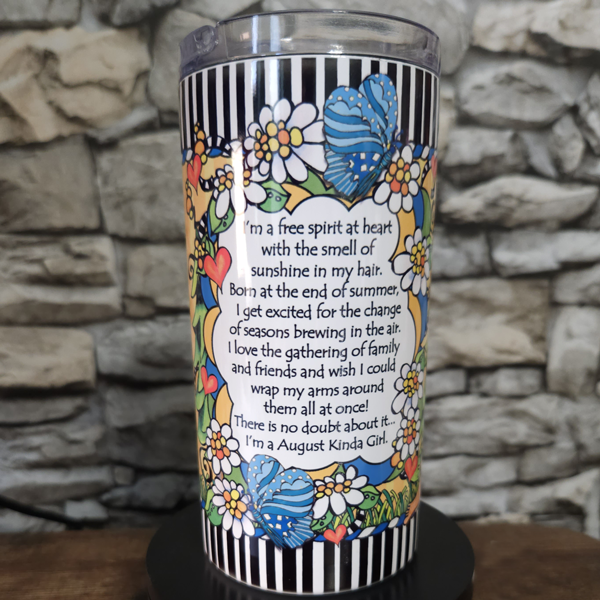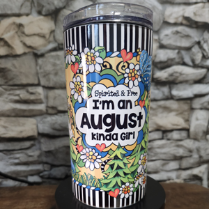 Spirited & Free I’m a August Kinda Girl – 16oz. (4 in 1) Stainless Steel Can Cooler Tumbler
