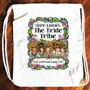 Bride Tribe (3-6 Girl options) – 15″ x 13″ Drawstring Backpack/Tote Bag