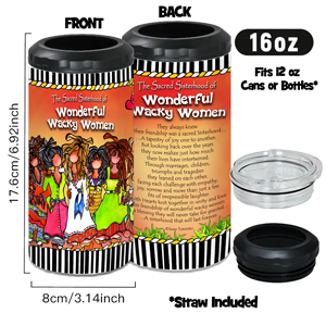 Celebrating the Sacred Sisterhood of Wonderful Wacky Women – 16oz. (4 in 1) Stainless Steel Can Cooler Tumbler