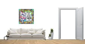 Sometime bigger is better! Wacky words of wisdom can be fun in items that can used daily like mugs, key chains and tumblers. But when you’re designing a space and want impact, nothing beats a large, gallery wrapped canvas. These 32″ x 32″ giclee prints on canvas wrapped in 1.5″ frame are perfect for telling the world that they are in the presence of a wonderful wacky woman or family. — Typically seen at our art shows, now available for the first time online.