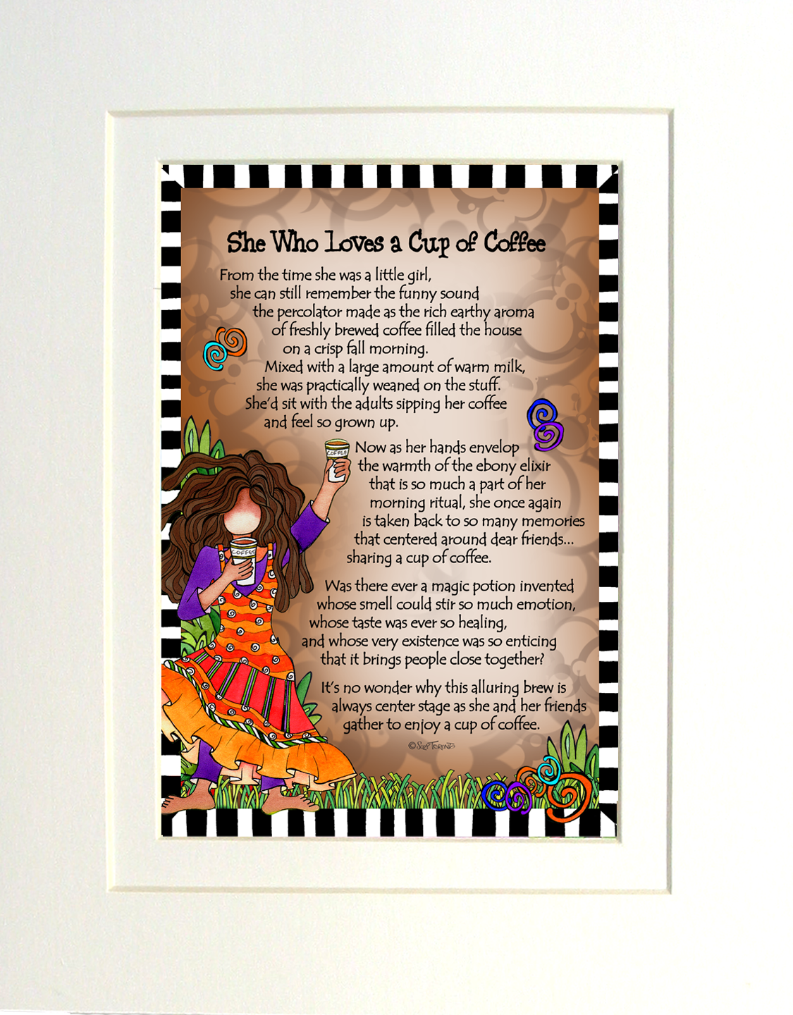 She Who Loves a Cup of Coffee – 8 x 10 Matted “Gifty” Art Print