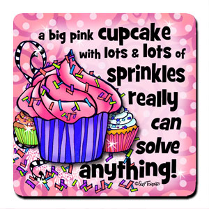 a big pink cupcake with lots & lots of sprinkles really can solve anything! – Coaster