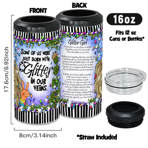 Some of Us Were Just Born With Glitter in our Veins – 16oz. (4 in 1) Stainless Steel Can Cooler Tumbler
