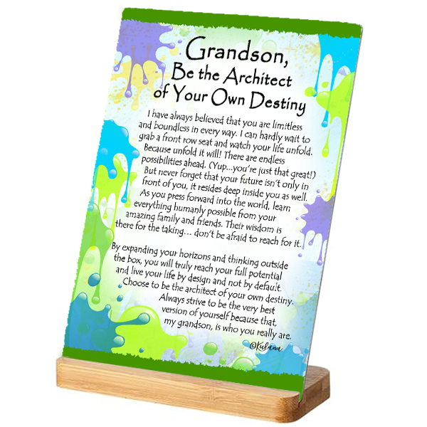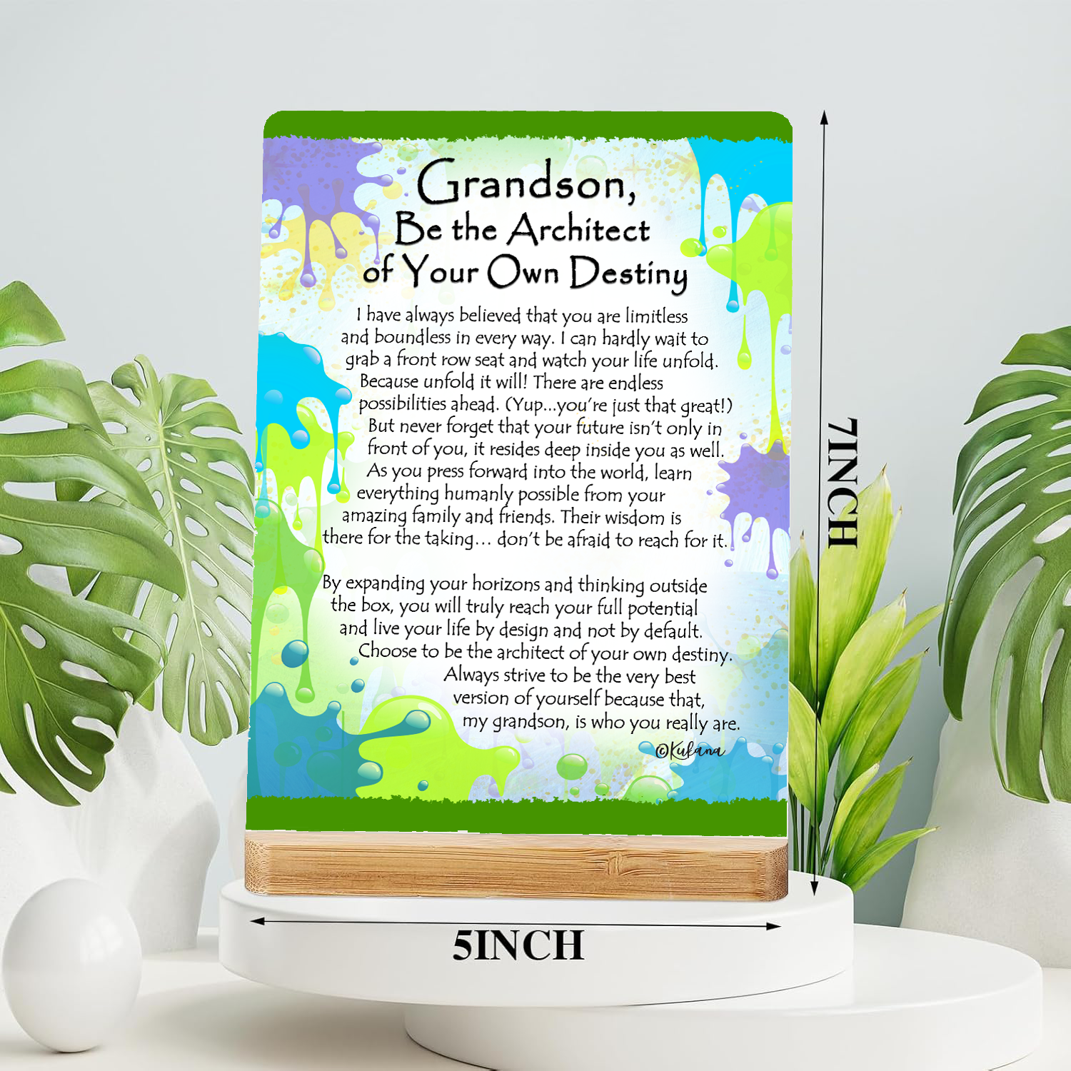 Grandson, Be the Architect of your Own Destiny – (Kukana) 5 x 7 Metal Art Print w Wooden Base & Decorative Box