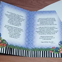 Distinctive design: two-panel, greeting card measures 7.0 x 4.9 in. And includes envelope, and there’s plenty of space to add a personal message if desired