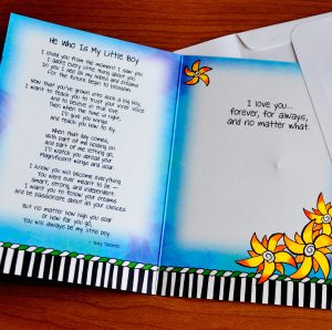 Heartfelt sentiment: author/illustrator Suzy Toronto’s heart-tingling words and fun-filled illustrations are perfect for letting your little boy in your life know how much he means to you every day; see photo for greeting card message