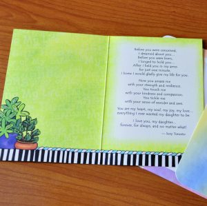 Heartfelt sentiment: author/illustrator Suzy Toronto’s heart-tingling words and fun-filled illustrations are perfect for letting your daughter know how much she means to you every day; see photo for greeting card message