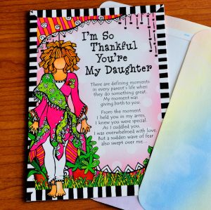 Heartfelt sentiment: author/illustrator Suzy Toronto’s heart-tingling words and fun-filled illustrations are perfect for letting your daughter know how much she means to you every day; see photo for greeting card message
