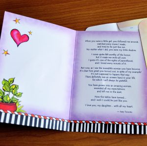 Heartfelt sentiment: author/illustrator Suzy Toronto’s heart-tingling words and fun-filled illustrations are perfect for letting your daughter know how much she means to you every day; see photo for greeting card message