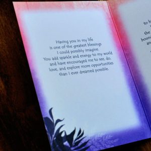 Simply cut along the inside fold on the far right to create a keepsake bookmark, holding the sweet thought and memory of the card… and of the person who sent it… in your heart forever.