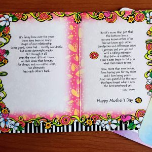 Heartfelt sentiment: author/illustrator Suzy Toronto’s heart-tingling words and fun-filled illustrations are perfect for letting your sister know how much she means to you this Mother’s Day; see photo for greeting card message