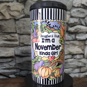 Snuggles & Hugs I’m a November Kinda Girl – 16oz. (4 in 1) Stainless Steel Can Cooler Tumbler