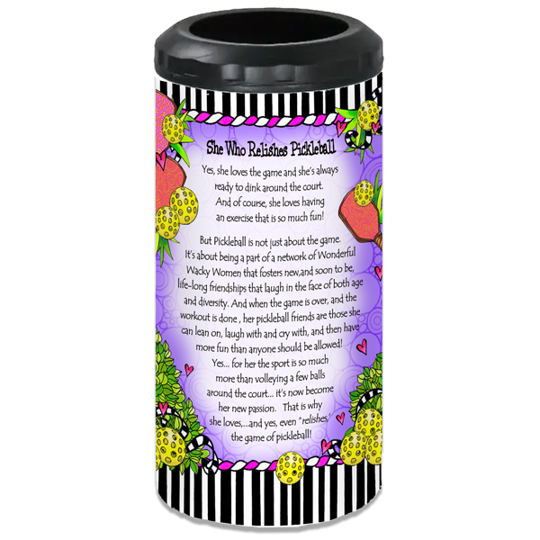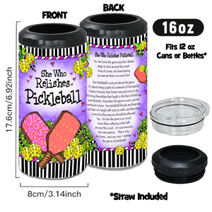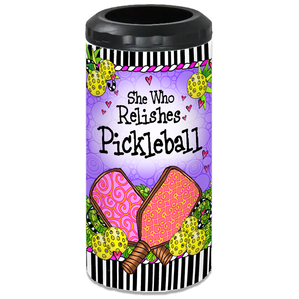 She Who Relishes Pickleball – 16oz. (4 in 1) Stainless Steel Can Cooler Tumbler