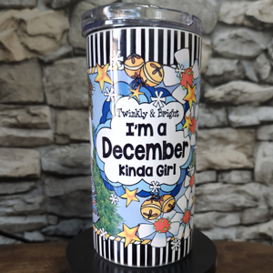 Twinkly & Bright I’m a December Kinda Girl – 16oz. (4 in 1) Stainless Steel Can Cooler Tumbler