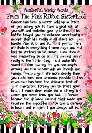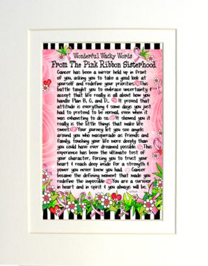 Be the first to review “Wonderful Wacky Words From The Pink Ribbon Sisterhood (Pink Ribbon) – 8 x 10 Matted “Gifty” Art Print” Cancel reply